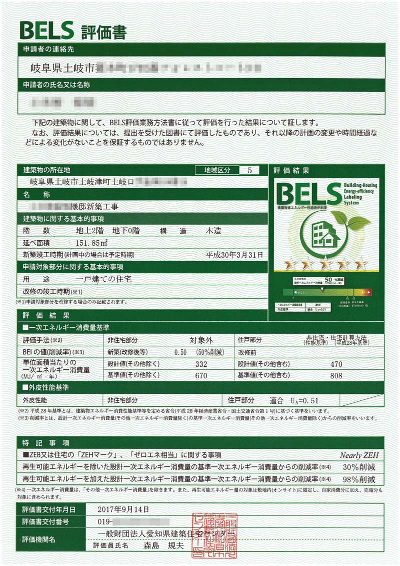 ちなみにKY様邸は「BELS(ベルス)」の認定も取得しました。