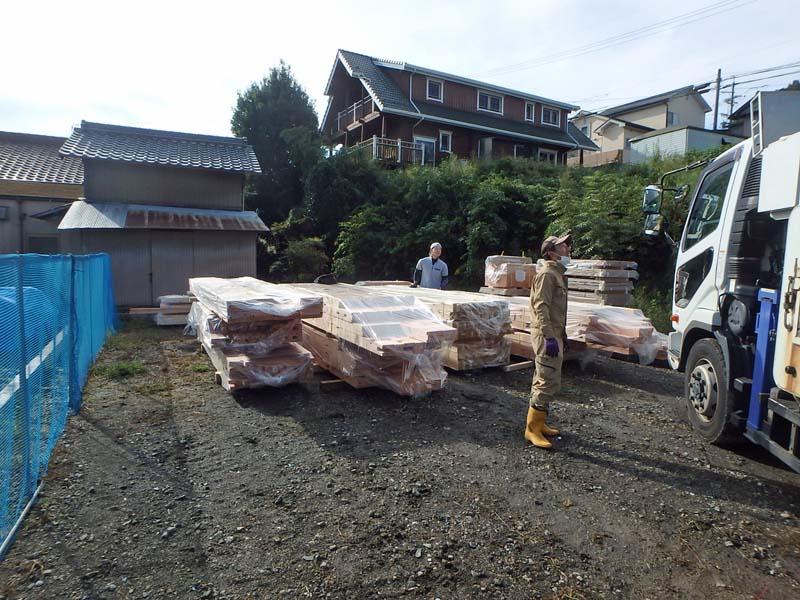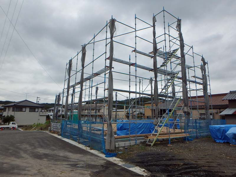 先週は雨が続きましたので、、建て方が予定通りできませんでした。