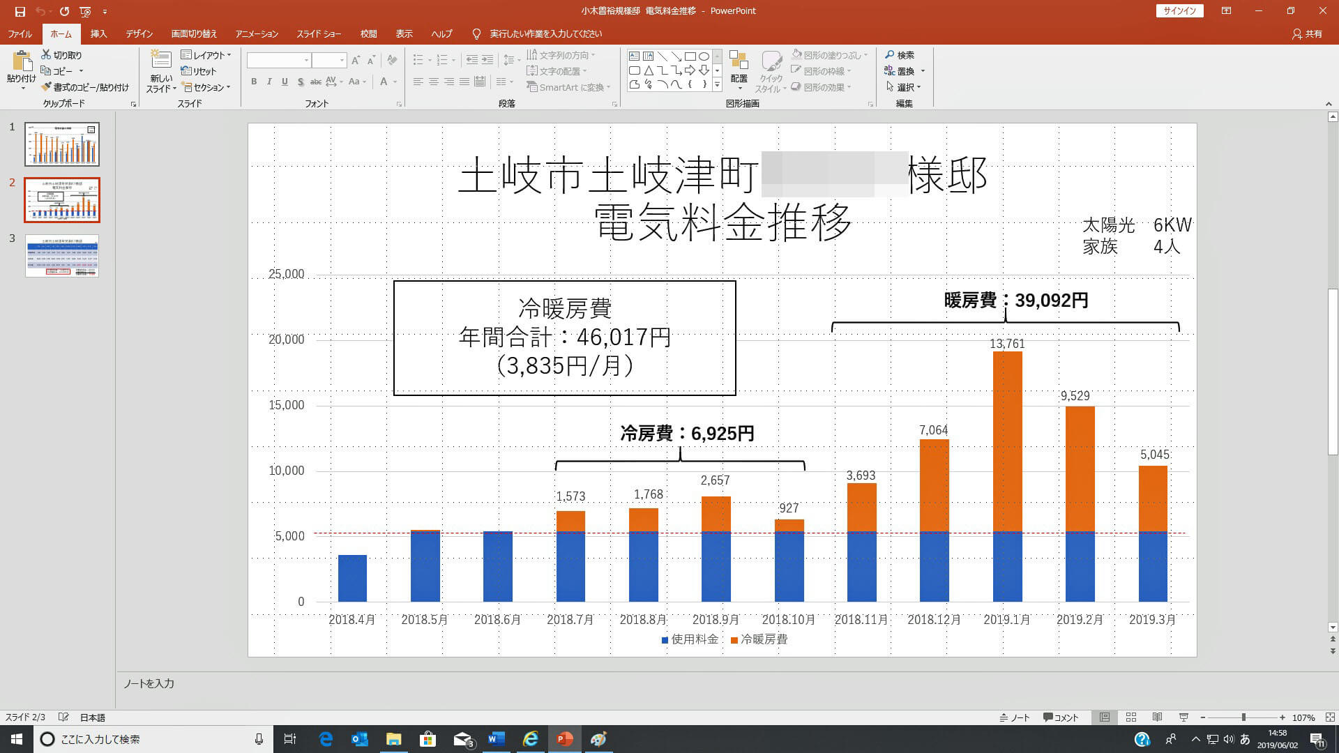 先週点検に伺ったKY様に許可を頂いたので、光熱費をお知らせします。