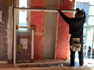 サッシ取付が終わり、今月中旬には外部はガルバリウム鋼板を張ります。