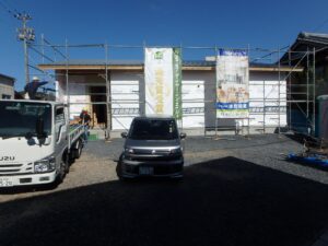 また、内部は断熱気密工事が終わりましたので、天井・床工事に入ります。