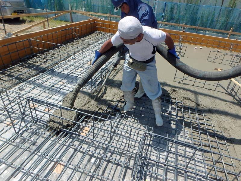 お盆休み前にはコンクリートの打設が終わり、