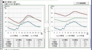 水野建築では改修前と改修後の室温をグラフで表すことが出来ます。