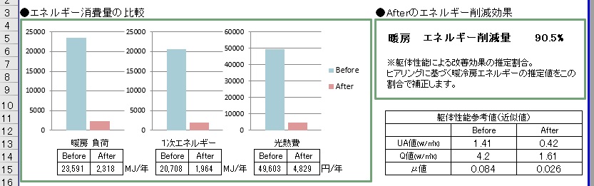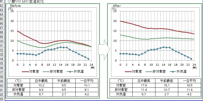 水野建築では改修前と改修後の室温をグラフで表すことが出来ます。