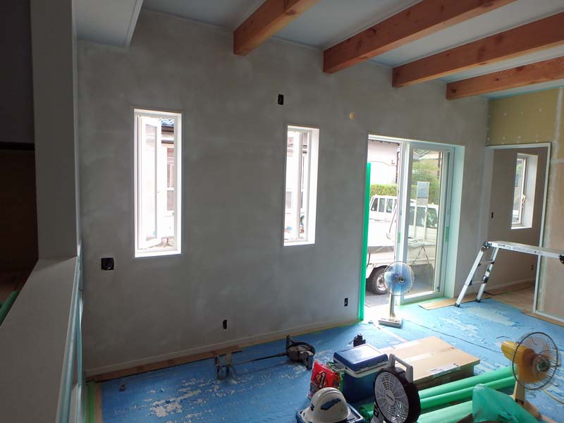 現場では左官屋さんが工事をしています。