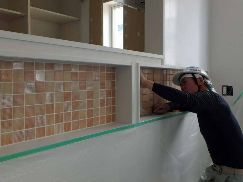 Y様邸のモザイクタイルは、ネットで購入されたものを、