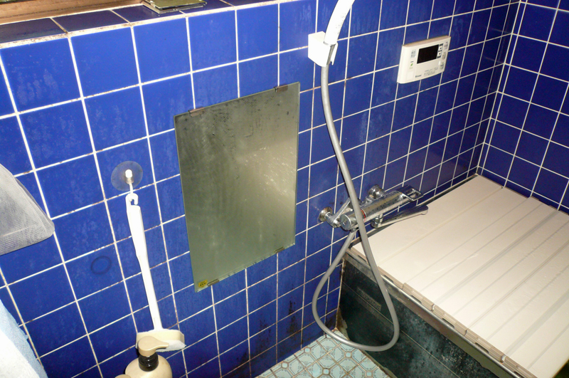 ■K様の要望で浴室に固定の鏡を取付けました。(浴室で髭を剃られていますので)