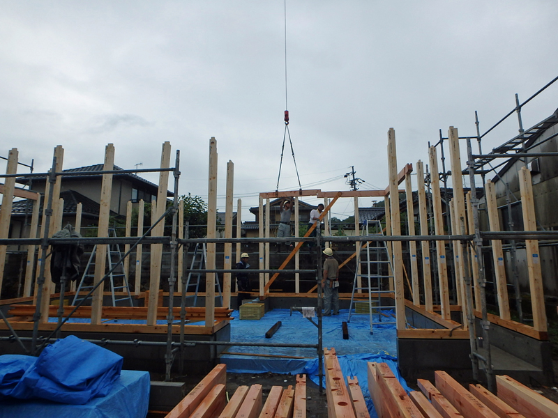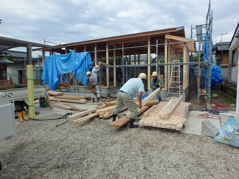 午後は作業を中止して大工さんは家に帰ってもらいました。