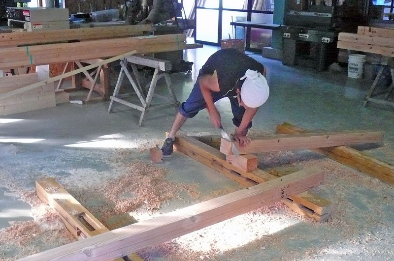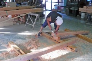 位置だし・墨付けを担当して、大工育成塾の寺島君が木材の加工を担当しました。