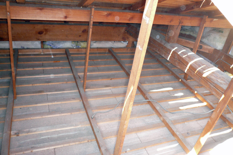 瓦や下地材をめくると天井の裏はこんな状態です