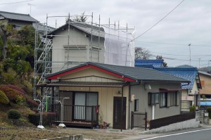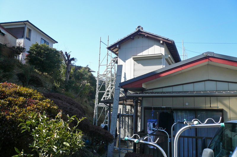 今回の工事は、2階の屋根の瓦の取替工事と外壁の塗装工事、1階屋根の塗装工事です。