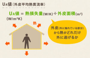 建物全体の保温性能が重要です。性能値を表す数値としてUA値が使用されていますが、