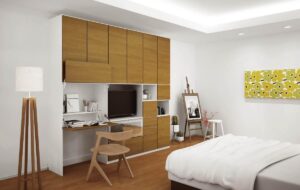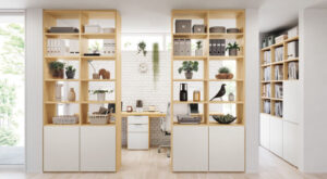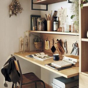 たとえば、デスクを組み入れられる壁面収納を作る方法があります。