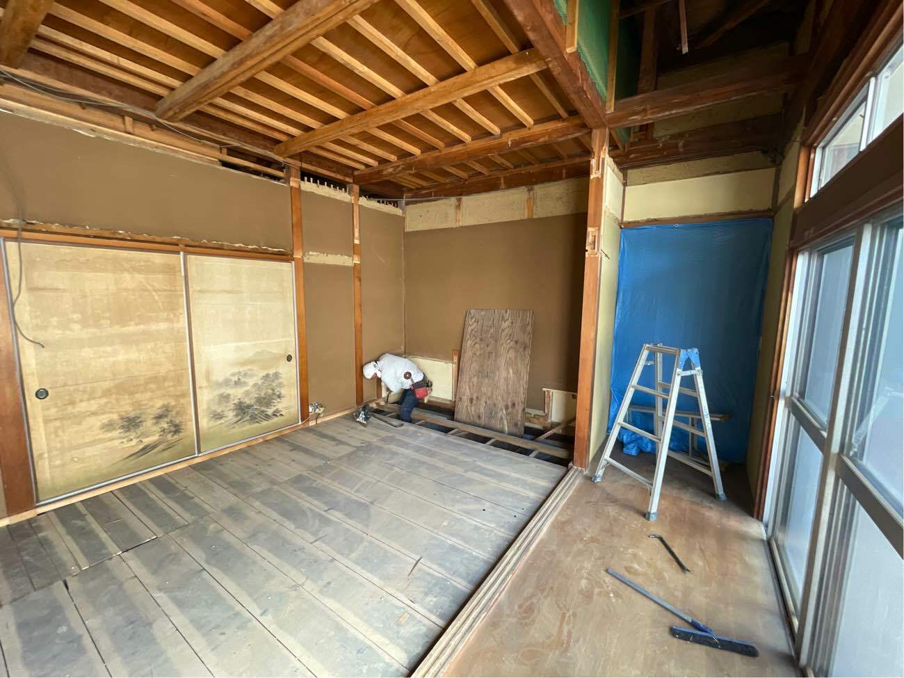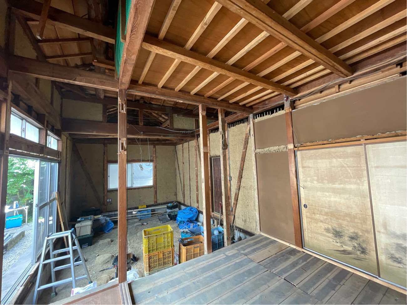 | 仕 様 | 外壁::ガルバリウム鋼板 サッシ:アルミ樹脂複合サッシ(エピソードNEO) 天井・壁:クロス 床:無垢材(桜) 水回り製品:Panasonic及びTOTO 1階部分を耐震改修・断熱改修します。 |