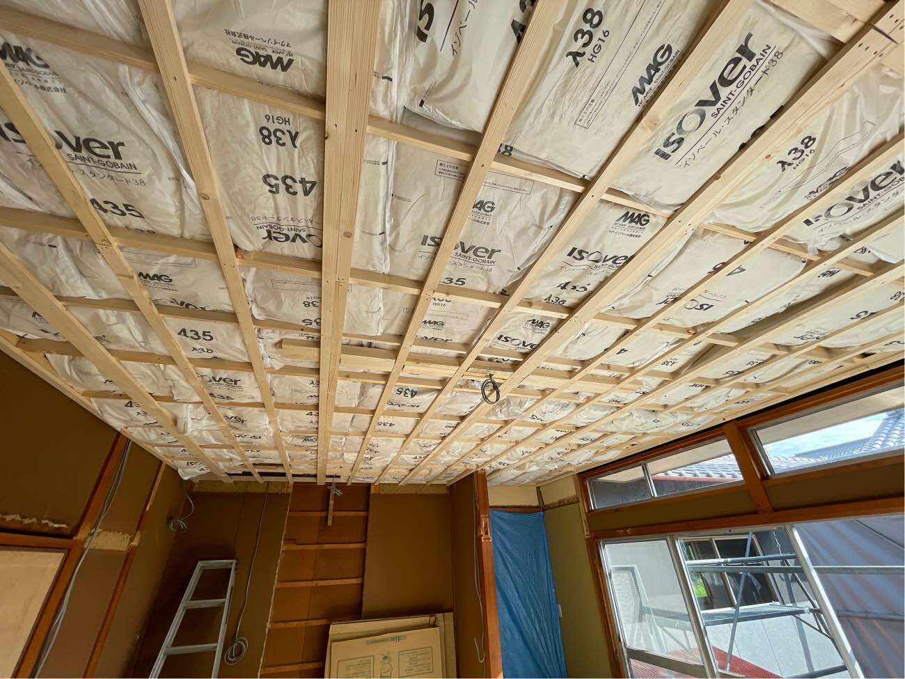 天井裏には高性能グラスウール16K 暑さ155ミリの断熱材を敷き込みしてあります