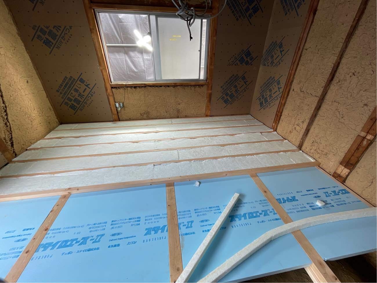 床下の断熱材はスタイロフォームt=60と高性能グラスウールt=42のダブル断熱です