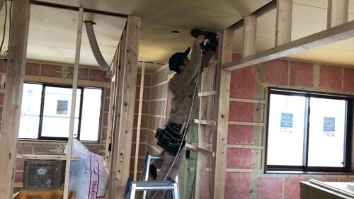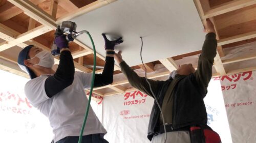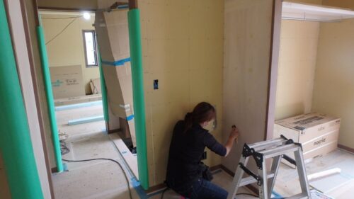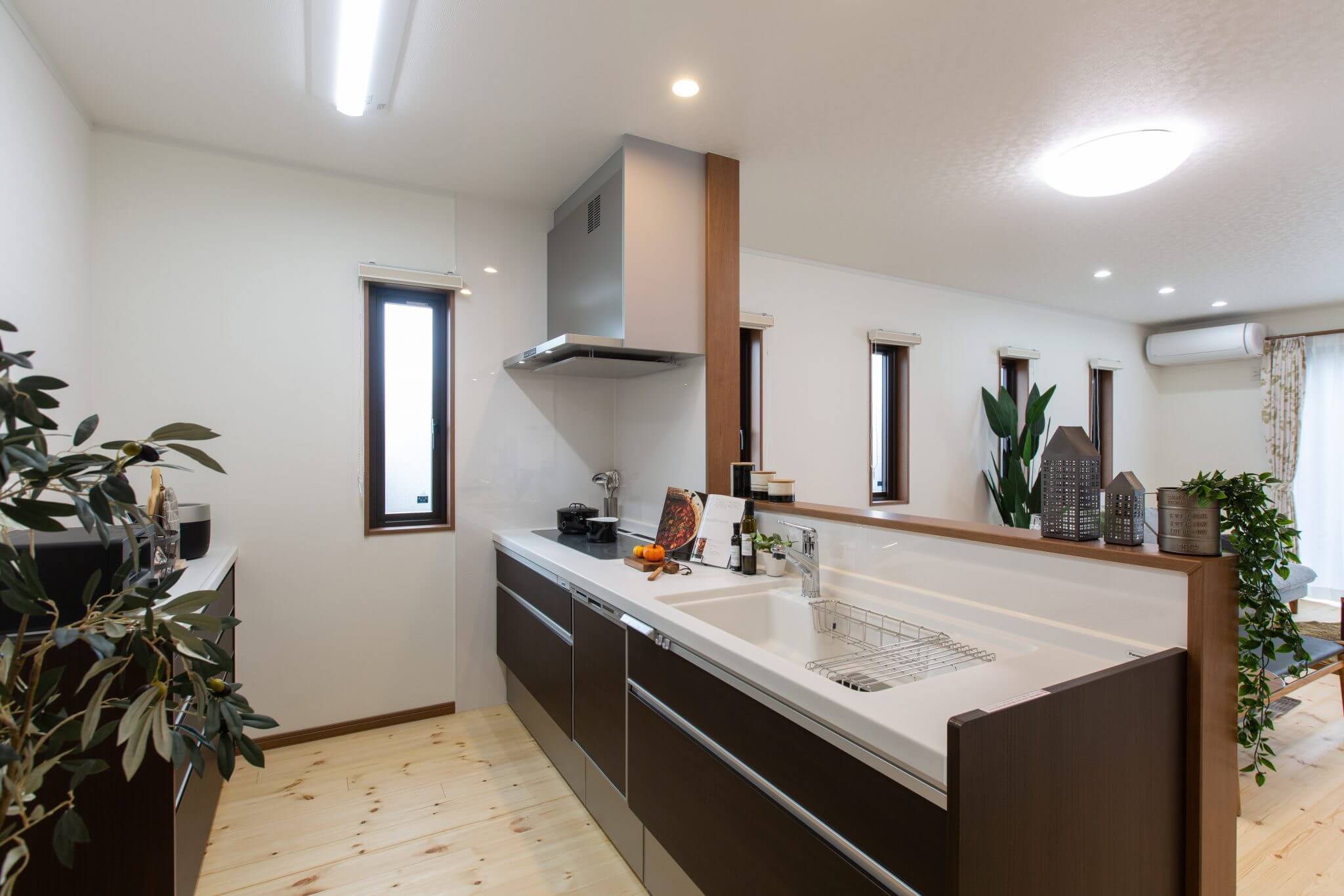 | 仕 様 | UA値:0.43 Q値:1.48 C値:測定前 外壁:ジョリパット(塗り壁) 壁:クロス 窓:樹脂サッシ 床:無垢材(パイン) 水回り製品:Panasonic |