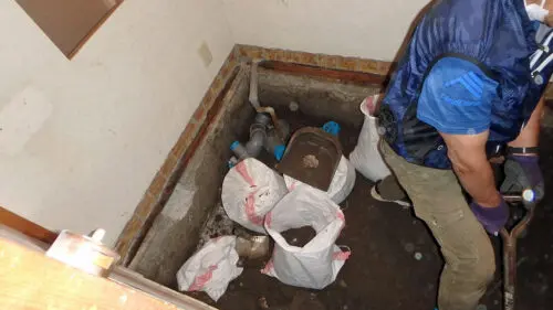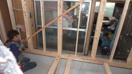 1階トイレ改修工事では、既存のトイレを解体して、床・壁・天井を新たに作り直します。