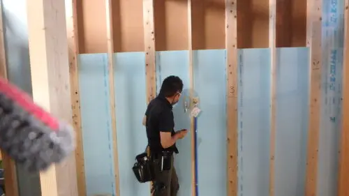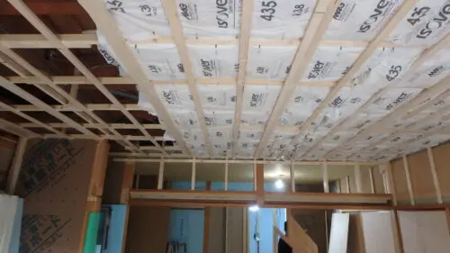 壁の上と下に「気流止め」を設置して、壁内の気流や天井裏に抜ける空気を遮断します。
