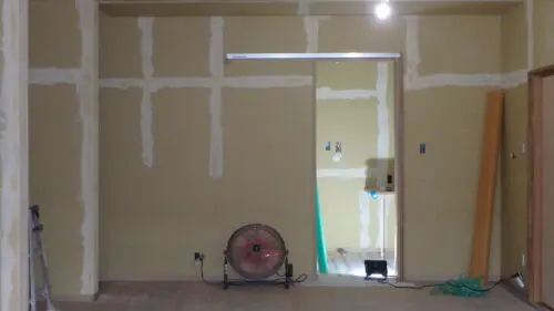 一般的な在来工法では、壁と床、および壁と天井との取り合い部分に隙間が生じています。