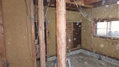柱が曲がっていますので、ドーブチに下地をしながら取付けていきまうす。