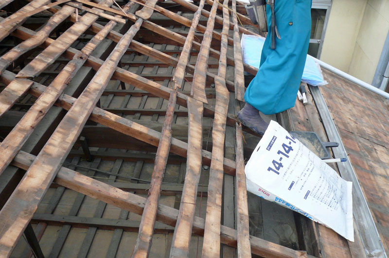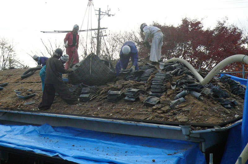 現在の瓦屋根から雨漏りが始まりましたので、いぶし瓦に取替工事です。
