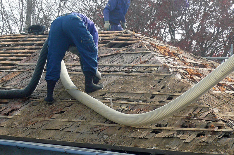 屋根替え工事では天候によって工事が左右されますので雨仕舞には十分気を付けて工事を行っていきます。