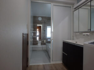 工事内容は、浴室と洗面室はスケルトン解体(骨組みだけの解体)をして、ユニットバスを入れて、洗面室も新しい洗面台を設置しました。もちろん断熱改修も行いました。