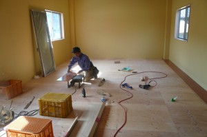 今回は、鉄骨造の建物に床下地を作りフローリングを張る工事です。